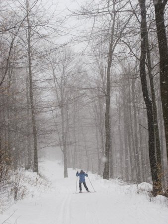 - Woman Cross Country Skate Skiing Through the Woods is digitally printed on archival photographic paper with a special iridescent finish, resulting in vivid, pure color and exceptional detail that is suitable for any museum or gallery display. Browse at your leisure. 100% Satisfaction Guaranteed.